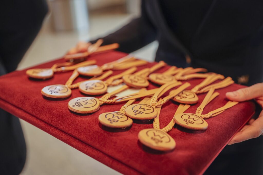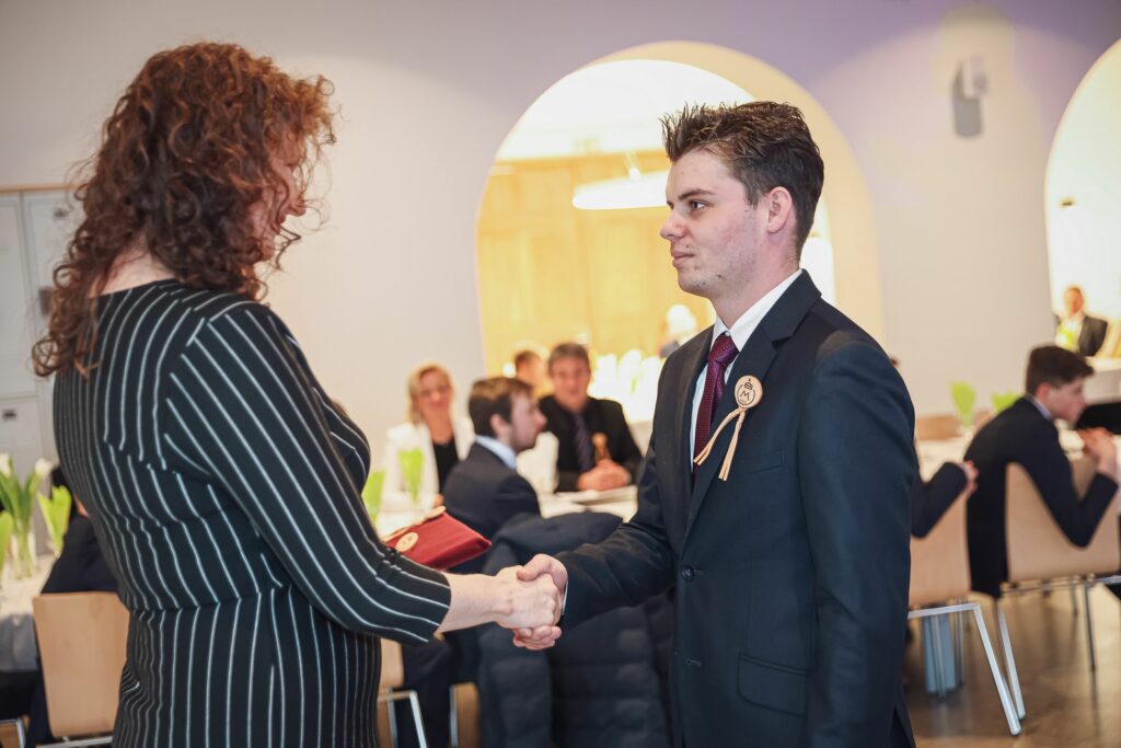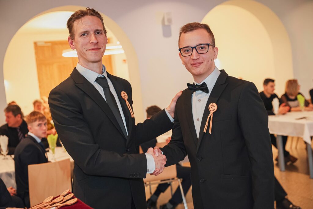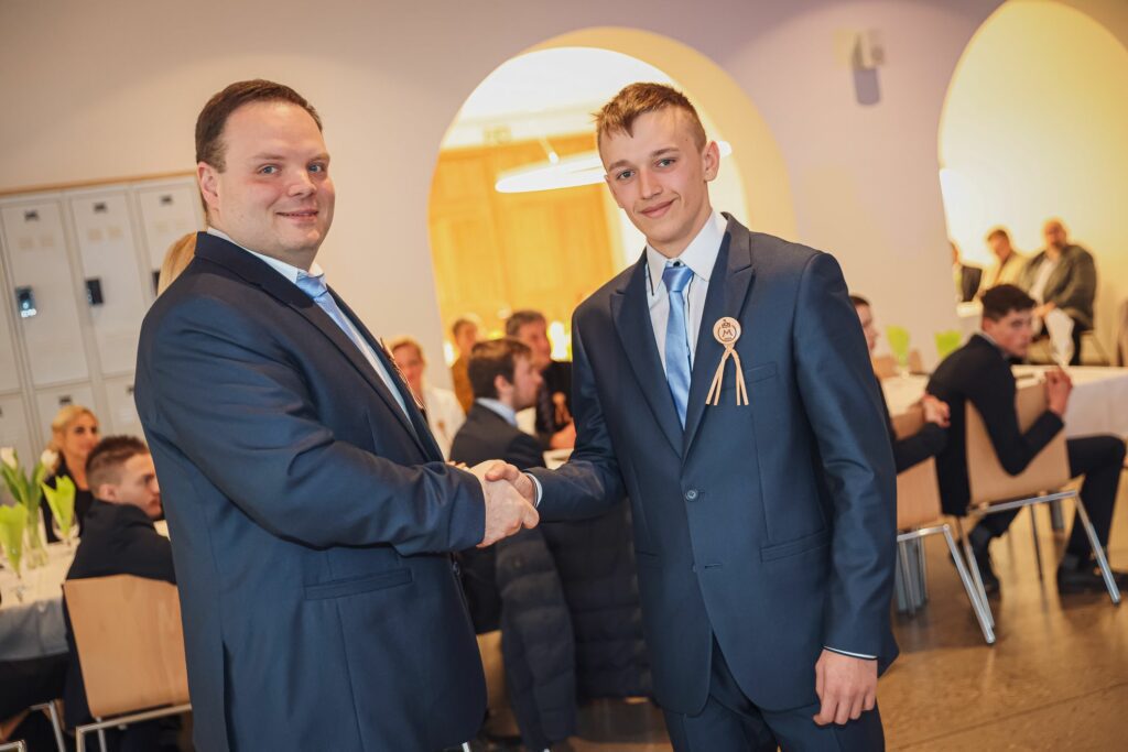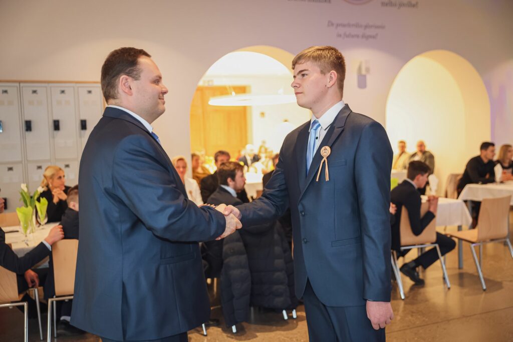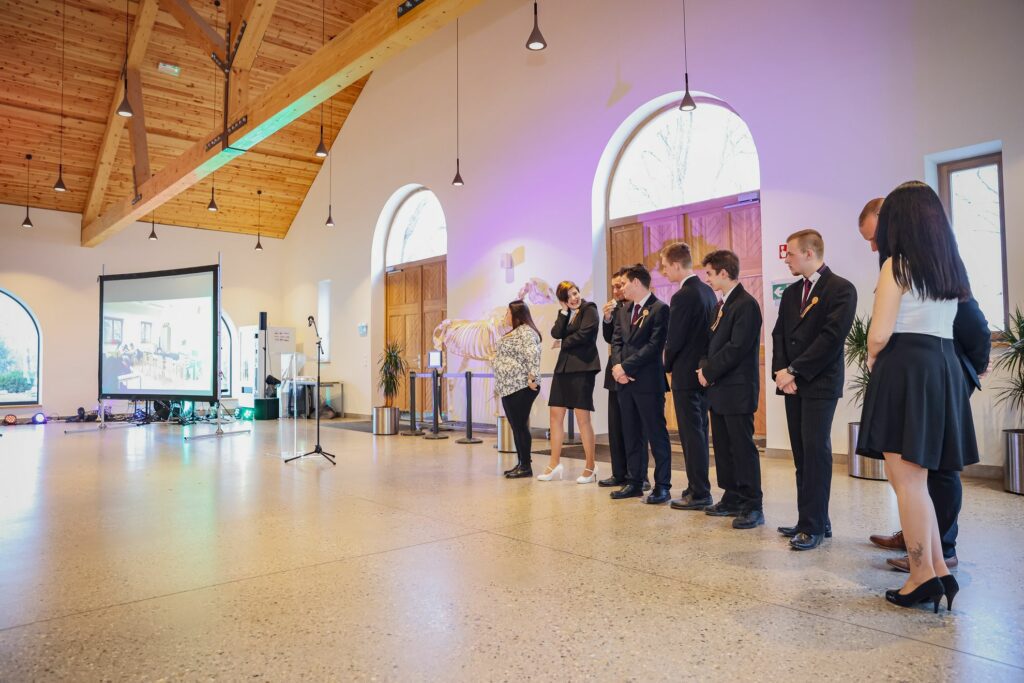 Kovács Petra 12.A osztályos tanuló tűzte fel az első szalagokat az iskolavezetés tagjainak, ezt követően Igazgató Úr tűzte fel a szalagokat az osztályfőnököknek és Perity Endre szakmai elméleti oktatónak. A lószerszámok fonottsallangos díszítését megidéző, a Ménesbirtok címerét hordozó bőrkorongokat a makói Lenhardt Béla szíjgyártó mester készítette el.