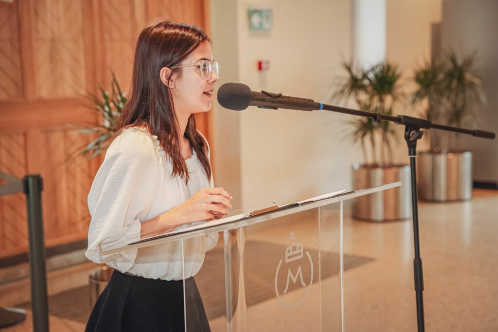 Az alsóbb éves tanulók nevében Balogh Lóránt 11.A osztályos tanuló búcsúzott, Kovács Kármen 10.1.L osztályos tanuló pedig Dsida Jenő Tíz parancsolat című versének részletét szavalta el. A végzős tanulók nevében Gazsó Adél 12.A osztályos tanuló köszönt el az intézménytől és diáktársaitól, majd Paraszt Tünde 12.A osztályos tanuló Reményik Sándor Akarom című versével búcsúzott.