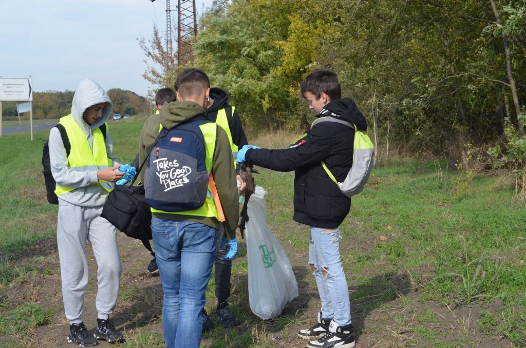Október 21-én 11.30 órától kezdődően tanulóink két helyszínen – Mezőhegyes külterületén Tótkomlós, illetve Pitvaros irányában – gyűjtöttek szemetet az erős széllel dacolva, kis csoportokban, oktatói felügyelettel. Az országos szervezők az akcióhoz kesztyűket, zsákokat és kötözőanyagot biztosítottak. Fenntartónk, a Nemzeti Ménesbirtok és Tangazdaság Zrt. autóbusszal segített eljutnunk az akció helyszínére, valamint láthatósági mellényekkel is segítette a munkánkat.