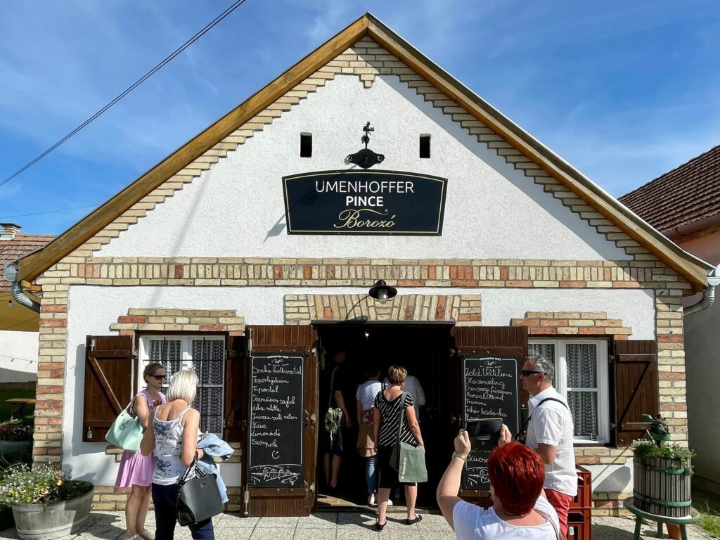 Hajós-Pincefaluban borkóstoló és rétes kóstoló várt bennünket az Umenhoffer Pincészetben.